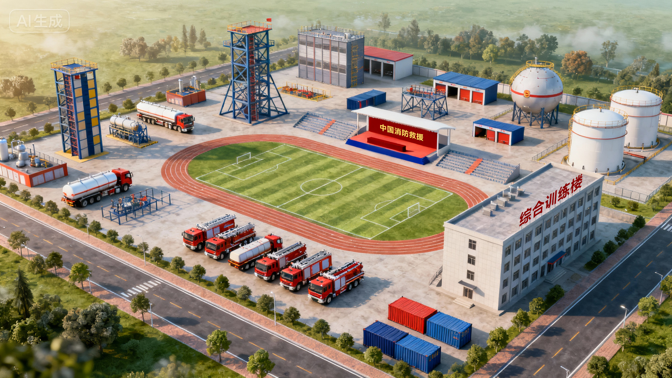 集多介质真火模拟训练设施与业务培训、 技能考核、实战演练、技术竞赛为一体的实训演练系统,包含:化工装置火灾事故处置训练、综合训练塔内真火模拟训练、真烟真火训练集装箱、多功能危化品运输槽车处置装置等